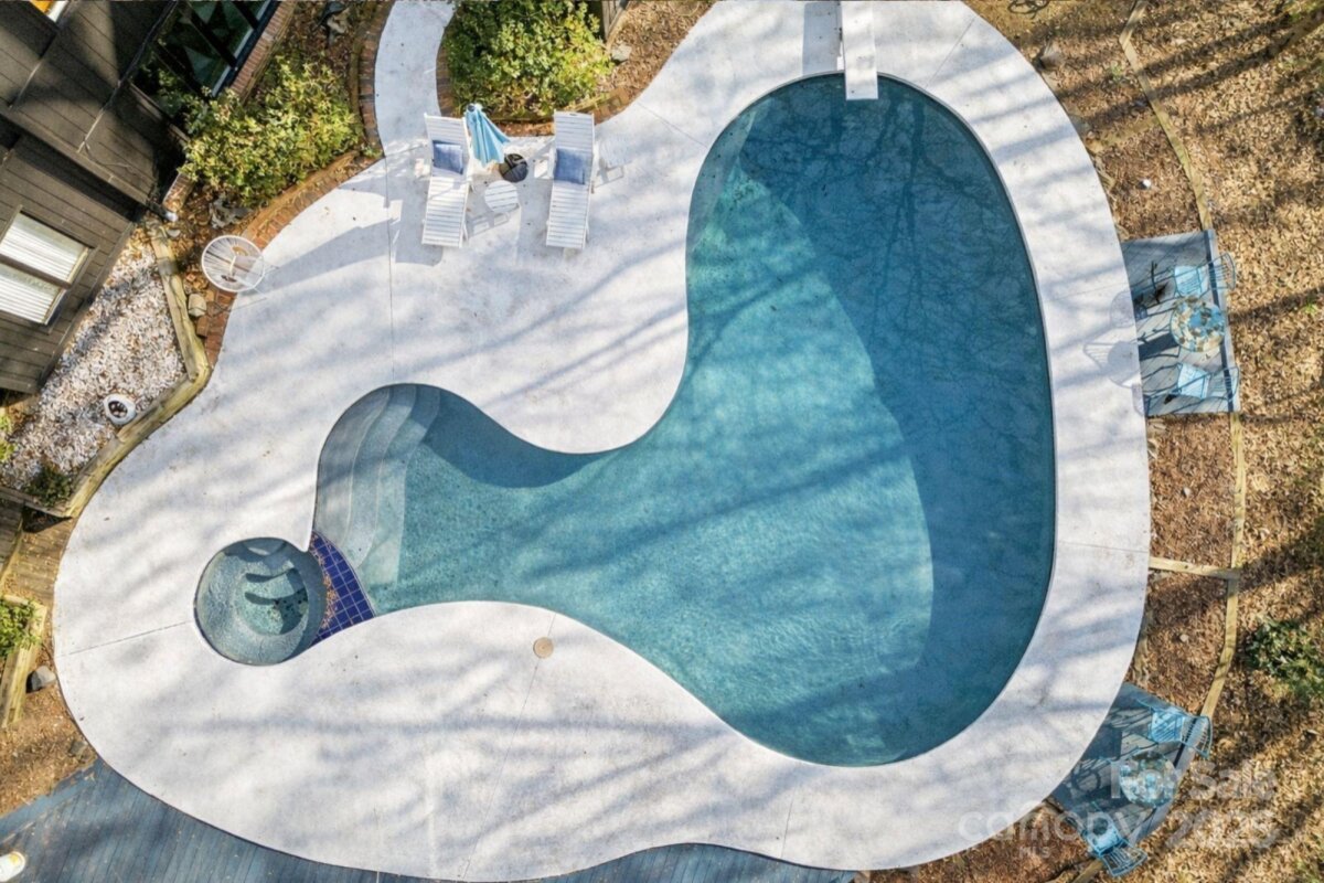 Rare opportunity to secure an exceptional homesite in a truly dream-worthy setting: a remarkably large lot in exclusive Five Knolls Estates, with no HOA. Enjoy privacy, mature landscaping, and a quiet presence that’s increasingly hard to find – yet with easy access to dining, shopping, and everyday conveniences. All of the timeless appeal of mid-century design: clean lines, large gathering spaces, and walls of windows that create a strong indoor-outdoor connection. Lush greenery provides a gorgeous backdrop most of the year, with absolutely stunning foliage each fall. The primary suite is an oasis on the entire third floor with phenomenal natural light and thoughtful details like a giant, cedar-lined closet. The kitchen and bathrooms are ready for updating, presenting a compelling opportunity to tailor the home to your own taste—whether that means honoring the original aesthetic or a reimagined vision. This property invites you to create a personalized residence that is as distinctive as the neighborhood itself. If you love to entertain, the newly resurfaced pool and hot tub will be the epicenter of every party, with an inviting rec room and brick-floored sunroom to welcome guests inside after a swim. If you love to garden, the terraced side yard is just waiting for your inspiration. If you love to golf, then you probably already know that this location is truly a golfer’s haven – just a stone’s throw from Carmel Country Club’s South Course, one of their 2 championship golf courses. It’s also nearby to 2 more courses, Cedarwood (5 mins away) and Quail Hollow (12 mins). More than a home, welcome to a long-term investment in lifestyle, location, and legacy.