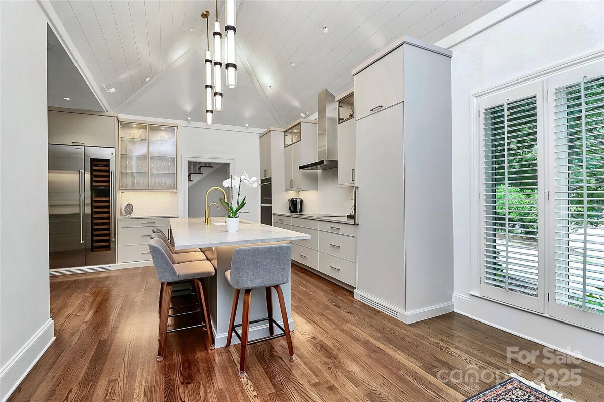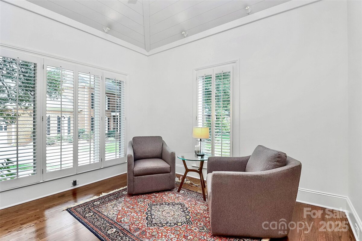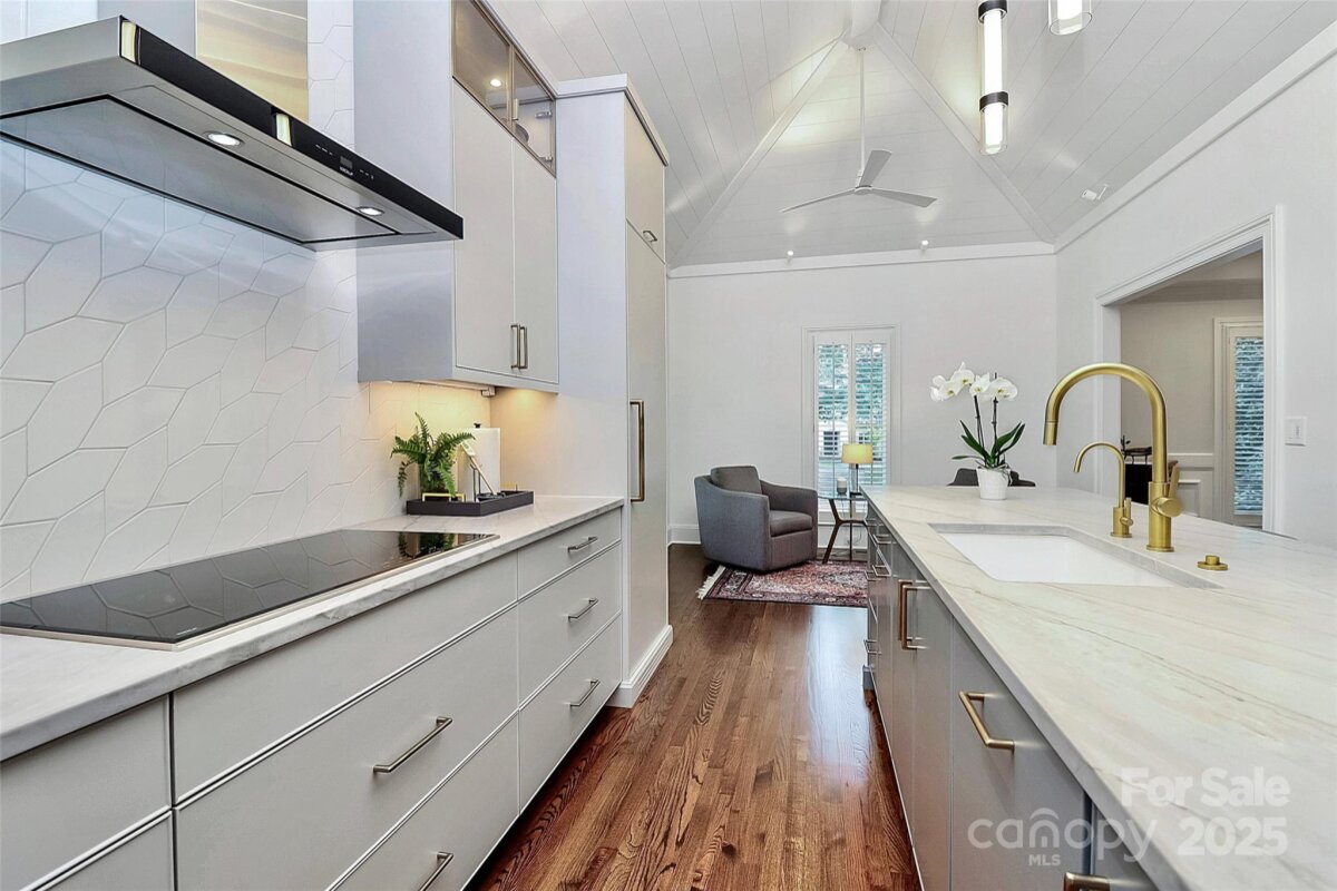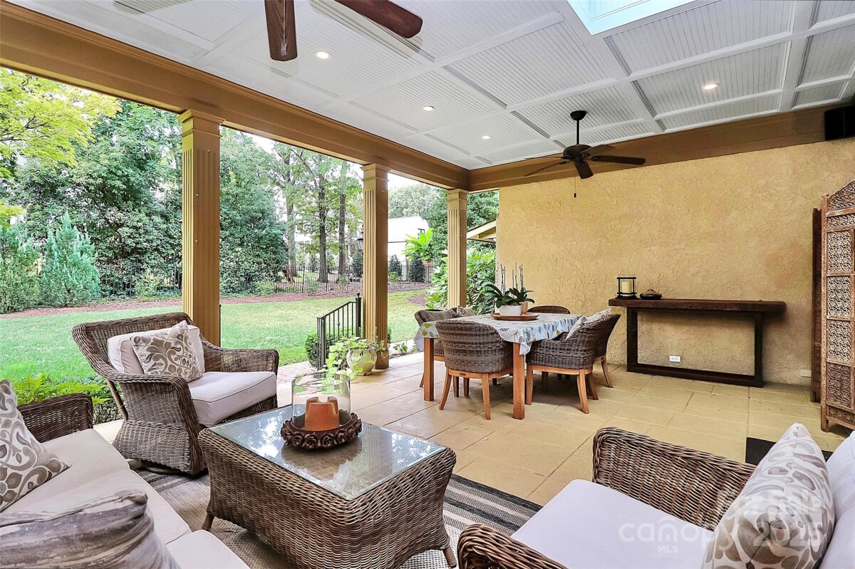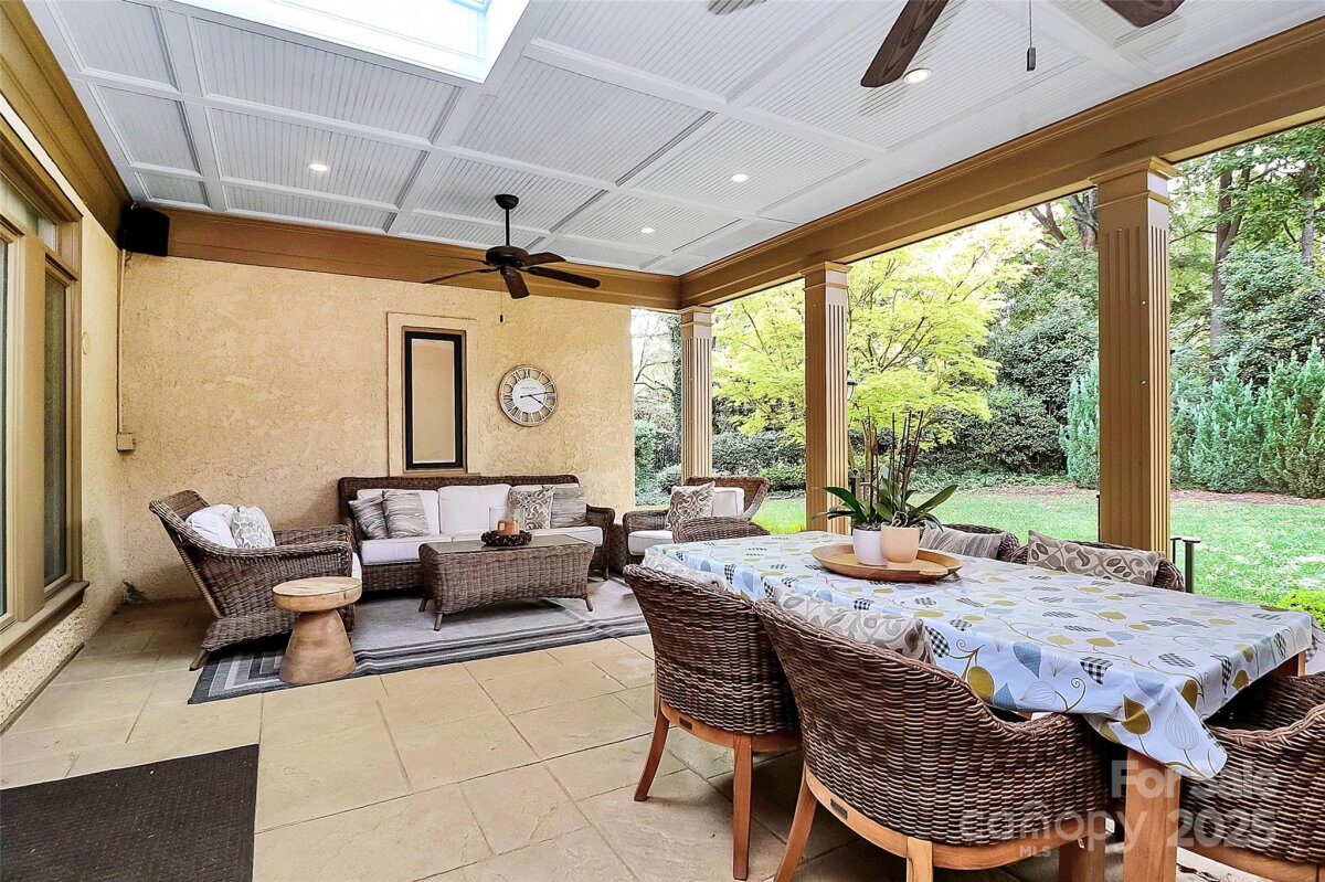 Stunning French Country Retreat in Prime South Charlotte Location! Nestled at the end of a quiet cul-de-sac, this beautifully updated home blends timeless charm with modern luxury. Thoughtfully renovated by Bistany Designs, every detail has been elevated to meet the highest standards of design and craftsmanship. The inviting interior showcases refinished hardwood floors, elegant updated moldings, and state-of-the-art Lutron lighting throughout the main level. At the heart of the home is a spectacular chef’s kitchen with vaulted ceiling, designer lighting, and custom cabinetry. A newly designed island with quartzite countertops anchors the space, complemented by top-tier appliances including a Wolf induction cooktop, Wolf oven & steam oven, Cove dishwasher, Paneled Sub-Zero refrigerator, Separate Sub-Zero freezer & wine tower combo. Sitting or breakfast area attached. Formal dining and front living room with fireplace boast exquisite lighting. The family room is both stylish and cozy, featuring a new fireplace surround, custom shelving, updated ceiling details, new lighting, and a skylight wired for an automated shade. The main-level primary suite is a true retreat, featuring a custom California Closet, marble-topped vanities, and a spa-like walk-in shower with a heated towel bar. Also on the main level is a dedicated office or guest bedroom with a full bath. Convenient laundry room on main and 1/2 bath. Upstairs features separate and spacious bonus space perfect for entertainment room or playroom. Upstairs on other side of home you'll find two additional bedrooms, full bathroom, and a massive walk-in attic—recently upgraded with spray foam insulation, offering exceptional storage. Spacious outdoor covered terrace with fans & level fenced-in backyard. Additional features include: New windows (2021), New roof (2022), Freshly painted garage, Plantation shutters throughout. Ideally located just minutes from SouthPark and Quail Hollow Country Club, this exceptional home offers both luxury and convenience in one of Charlotte’s most desirable areas. Don’t miss this rare opportunity - schedule your private showing today!