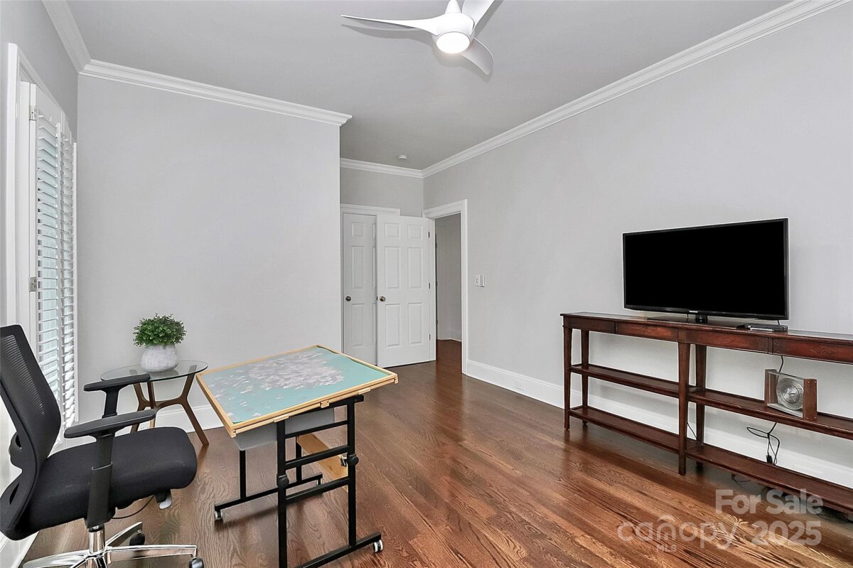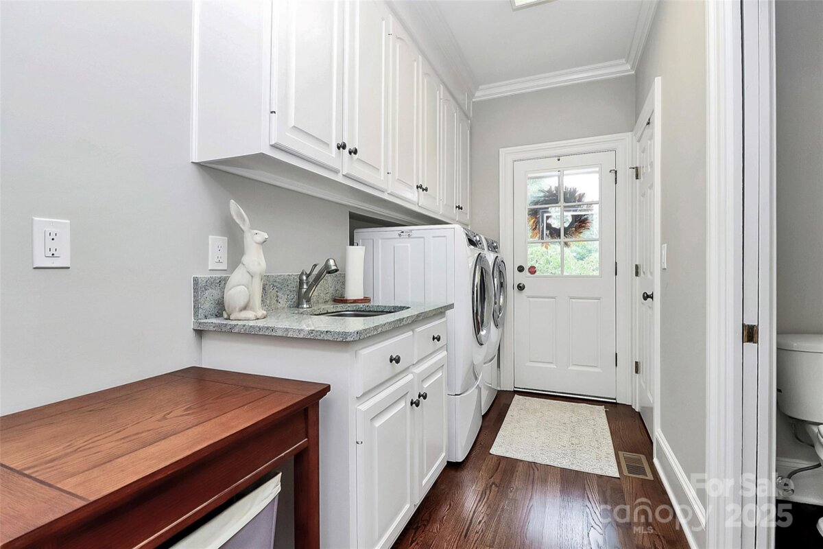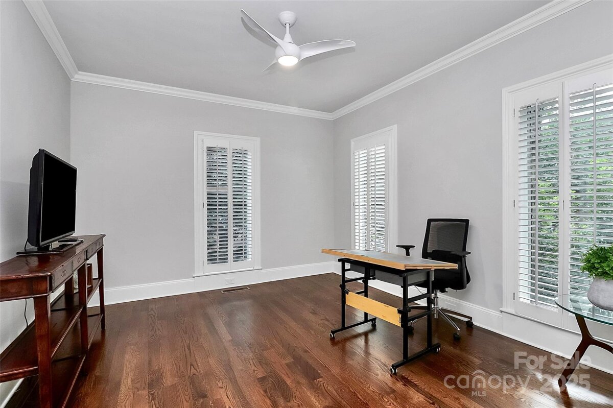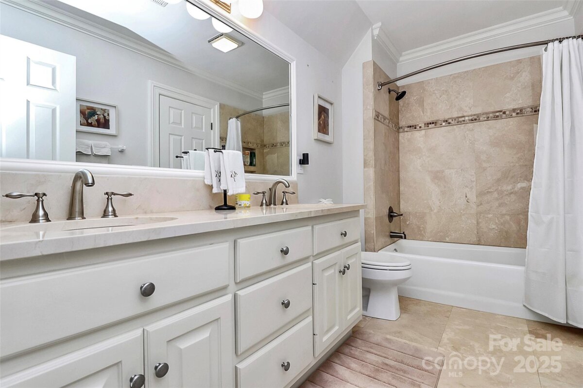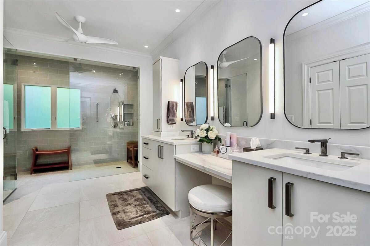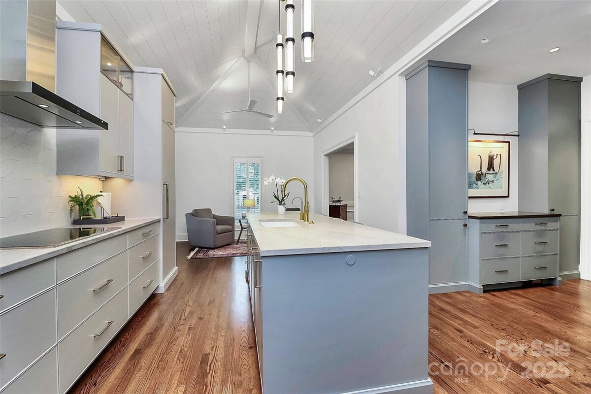 Stunning French Country Retreat in Prime South Charlotte Location! Nestled at the end of a quiet cul-de-sac, this beautifully updated home blends timeless charm with modern luxury. Thoughtfully renovated by Bistany Designs, every detail has been elevated to meet the highest standards of design and craftsmanship. The inviting interior showcases refinished hardwood floors, elegant updated moldings, and state-of-the-art Lutron lighting throughout the main level. At the heart of the home is a spectacular chef’s kitchen with vaulted ceiling, designer lighting, and custom cabinetry. A newly designed island with quartzite countertops anchors the space, complemented by top-tier appliances including a Wolf induction cooktop, Wolf oven & steam oven, Cove dishwasher, Paneled Sub-Zero refrigerator, Separate Sub-Zero freezer & wine tower combo. Sitting or breakfast area attached. Formal dining and front living room with fireplace boast exquisite lighting. The family room is both stylish and cozy, featuring a new fireplace surround, custom shelving, updated ceiling details, new lighting, and a skylight wired for an automated shade. The main-level primary suite is a true retreat, featuring a custom California Closet, marble-topped vanities, and a spa-like walk-in shower with a heated towel bar. Also on the main level is a dedicated office or guest bedroom with a full bath. Convenient laundry room on main and 1/2 bath. Upstairs features separate and spacious bonus space perfect for entertainment room or playroom. Upstairs on other side of home you'll find two additional bedrooms, full bathroom, and a massive walk-in attic—recently upgraded with spray foam insulation, offering exceptional storage. Spacious outdoor covered terrace with fans & level fenced-in backyard. Additional features include: New windows (2021), New roof (2022), Freshly painted garage, Plantation shutters throughout. Ideally located just minutes from SouthPark and Quail Hollow Country Club, this exceptional home offers both luxury and convenience in one of Charlotte’s most desirable areas. Don’t miss this rare opportunity - schedule your private showing today!