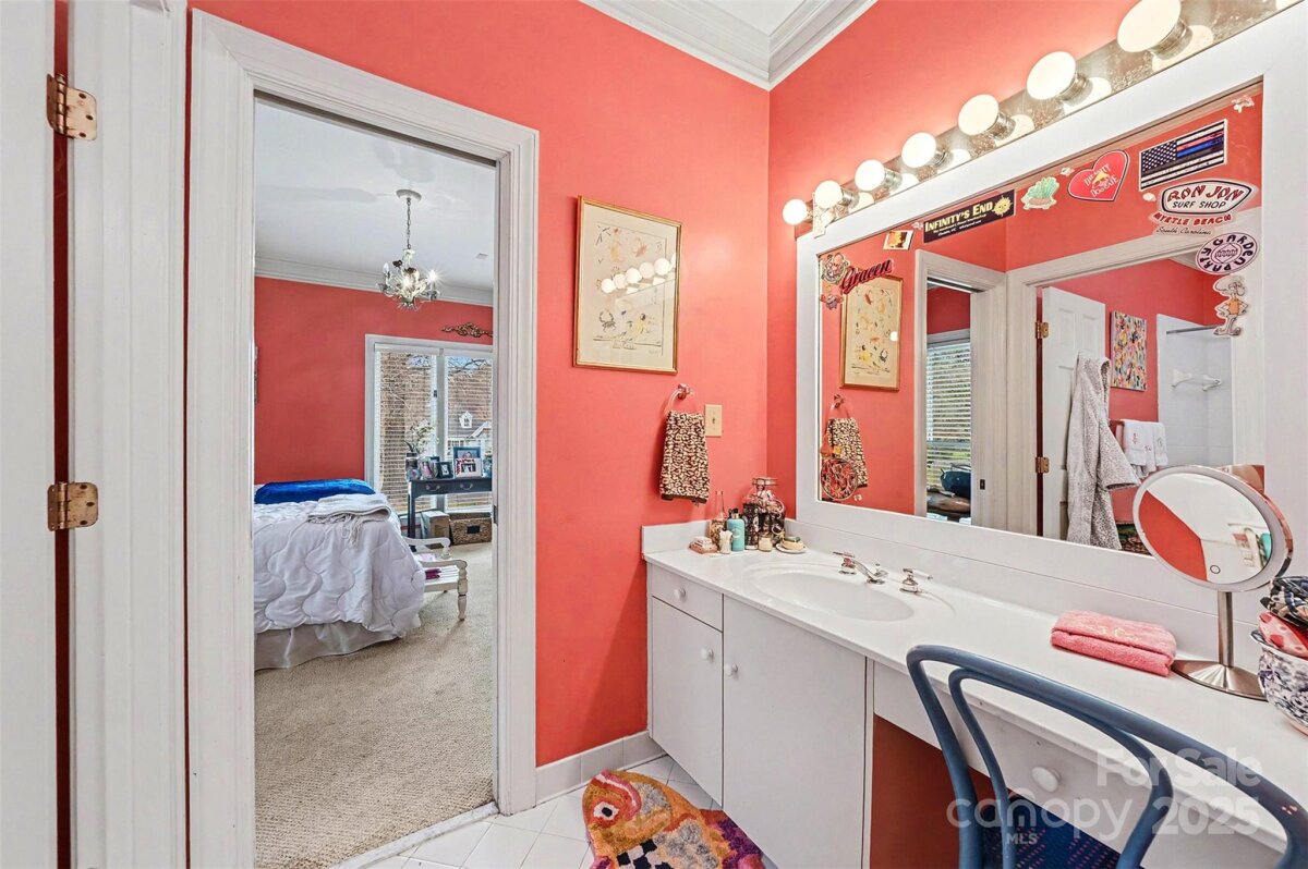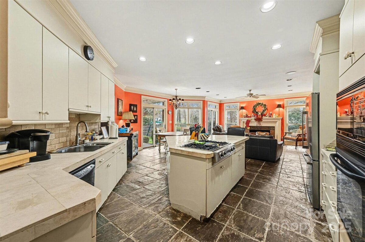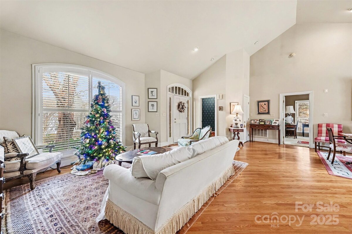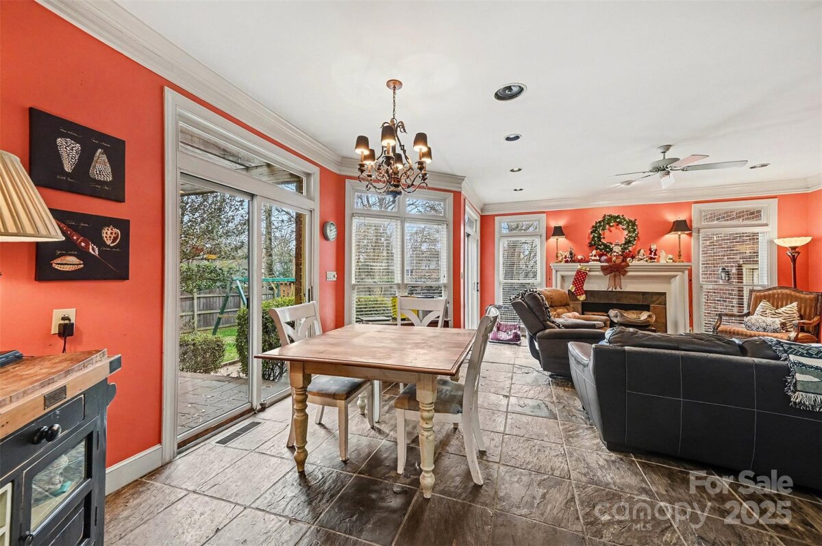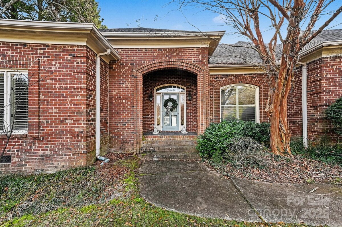 Nestled in the heart of the highly desirable Montibello neighborhood, this classic brick home offers timeless charm, thoughtful design, and a floor plan that truly delivers—highlighted by a spacious primary suite on the main level. A welcoming front entry opens to a light-filled living room with vaulted ceilings, hardwood floors, and elegant arched windows and doorways, creating an airy and inviting first impression. Multiple living spaces provide flexibility, including a comfortable family room featuring a fireplace with custom mantel, recessed lighting, and tile flooring, ideal for everyday living and entertaining. The kitchen is generously sized and designed for functionality, featuring white cabinetry, abundant counter space, tile flooring, and a large center island with seating, seamlessly connecting to the surrounding living and dining areas. The main-level primary suite serves as a private retreat with tray ceiling detailing, hardwood floors, and direct access to the backyard, offering a peaceful indoor-outdoor connection. The ensuite bath and generous layout provide comfort and convenience rarely found in this location. Upstairs, additional bedrooms are well proportioned with vaulted ceilings, large windows, and neutral finishes, offering versatile space for guests, home offices, or bonus living areas. Outdoor living is enhanced by a private, fenced backyard with mature trees and landscaping, complemented by a brick patio and pergola, perfect for relaxing or entertaining in a serene setting. Known for its tree-lined streets, strong sense of community, and proximity to SouthPark shopping, dining, and top Charlotte amenities, Montibello remains one of South Charlotte’s most sought-after neighborhoods. This home presents a rare opportunity to combine location, livability, and long-term value.