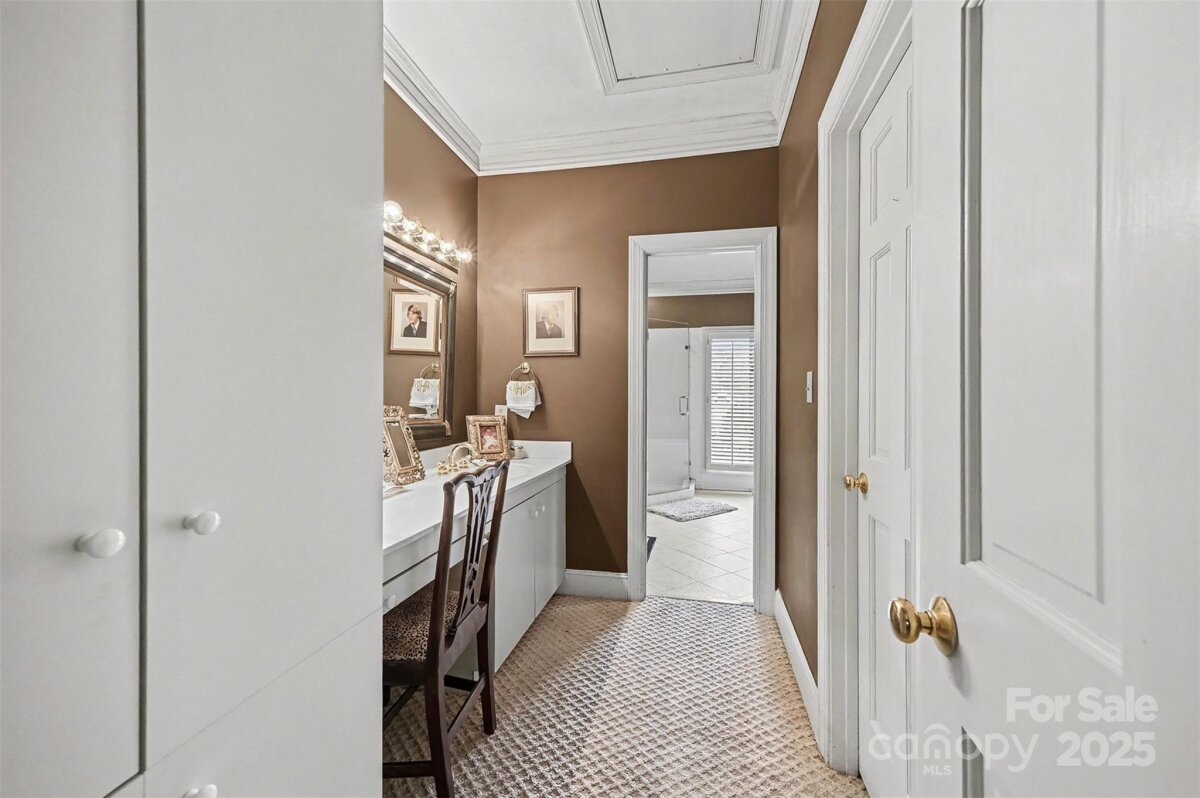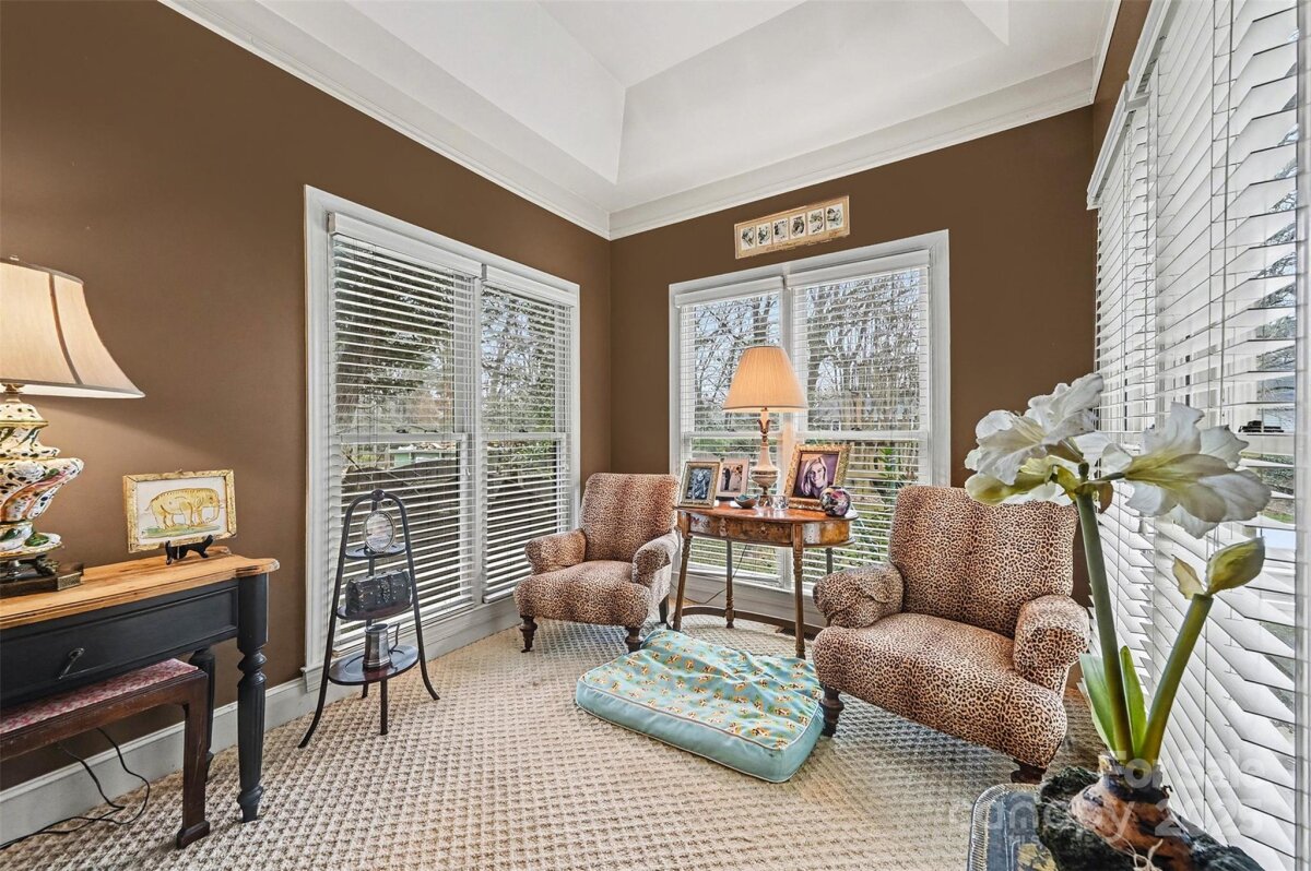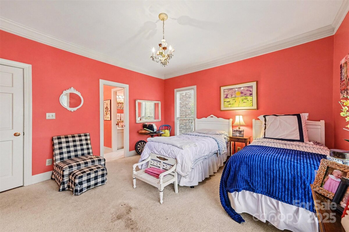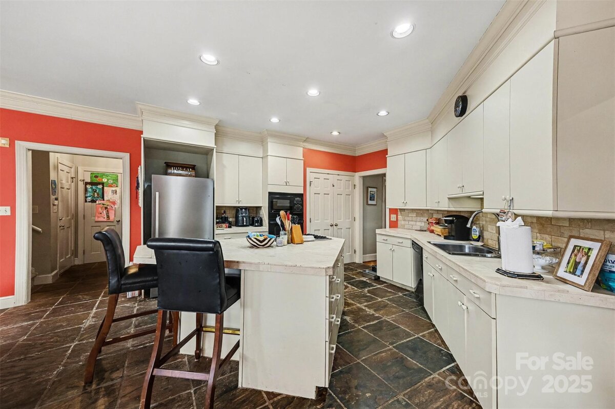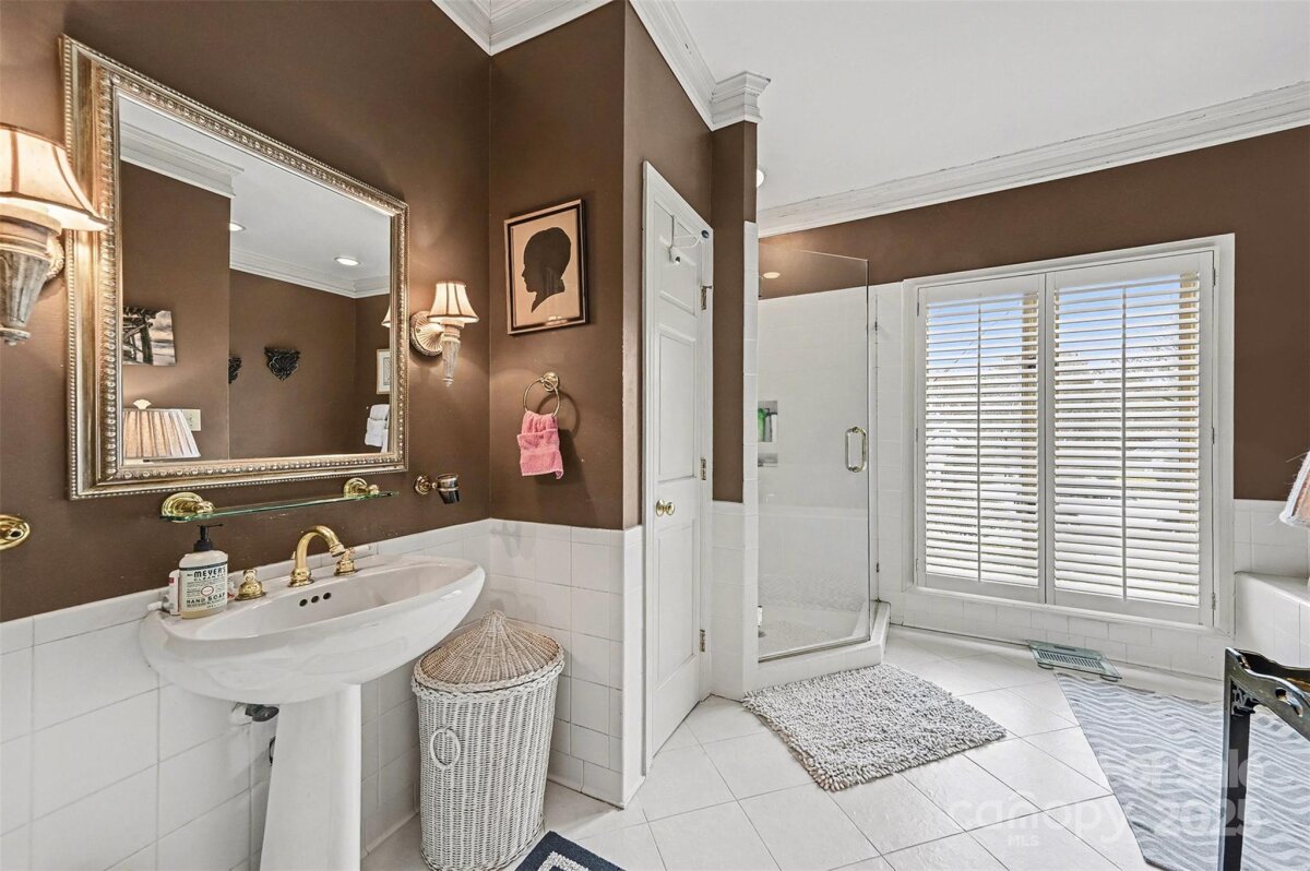 Nestled in the heart of the highly desirable Montibello neighborhood, this classic brick home offers timeless charm, thoughtful design, and a floor plan that truly delivers—highlighted by a spacious primary suite on the main level. A welcoming front entry opens to a light-filled living room with vaulted ceilings, hardwood floors, and elegant arched windows and doorways, creating an airy and inviting first impression. Multiple living spaces provide flexibility, including a comfortable family room featuring a fireplace with custom mantel, recessed lighting, and tile flooring, ideal for everyday living and entertaining. The kitchen is generously sized and designed for functionality, featuring white cabinetry, abundant counter space, tile flooring, and a large center island with seating, seamlessly connecting to the surrounding living and dining areas. The main-level primary suite serves as a private retreat with tray ceiling detailing, hardwood floors, and direct access to the backyard, offering a peaceful indoor-outdoor connection. The ensuite bath and generous layout provide comfort and convenience rarely found in this location. Upstairs, additional bedrooms are well proportioned with vaulted ceilings, large windows, and neutral finishes, offering versatile space for guests, home offices, or bonus living areas. Outdoor living is enhanced by a private, fenced backyard with mature trees and landscaping, complemented by a brick patio and pergola, perfect for relaxing or entertaining in a serene setting. Known for its tree-lined streets, strong sense of community, and proximity to SouthPark shopping, dining, and top Charlotte amenities, Montibello remains one of South Charlotte’s most sought-after neighborhoods. This home presents a rare opportunity to combine location, livability, and long-term value.