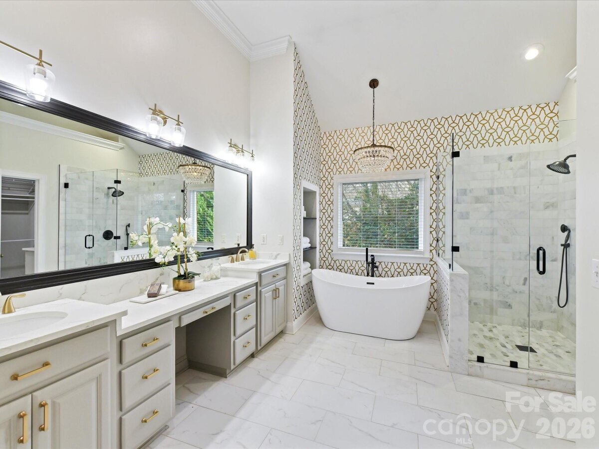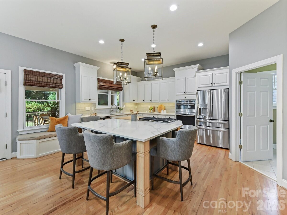 Beautifully maintained two-story, all-brick home offering timeless elegance with thoughtful modern updates throughout. The open floor plan features a light-filled two-story great room, a flexible main-level flex space, and four generously sized bedrooms upstairs, providing comfort and versatility for everyday living and entertaining. The updated kitchen is both stylish and functional, showcasing quartz countertops, stainless steel appliances, a gas cooktop, ample cabinetry, and an oversized island that flows seamlessly into the living area. The great room centers around a gas fireplace with custom floor to ceiling shiplap and a reclaimed wood mantel, creating a warm, welcoming gathering space. The expansive primary suite is a true retreat with a sitting area, spa-inspired bath featuring a marble shower, quartz double vanity, and a large walk-in closet. Stylishly updated bathrooms throughout include quartz countertops and refined finishes. Enjoy indoor-outdoor living on the spacious screened porch overlooking a private, beautiful backyard, perfect for relaxing or entertaining year-round. Ideally located just minutes from SouthPark Mall, Phillips Place, and Park Road Park. This move-in-ready home offers exceptional access to premier shopping, dining, and outdoor recreation. A perfect blend of classic construction, modern upgrades, and an unbeatable location.