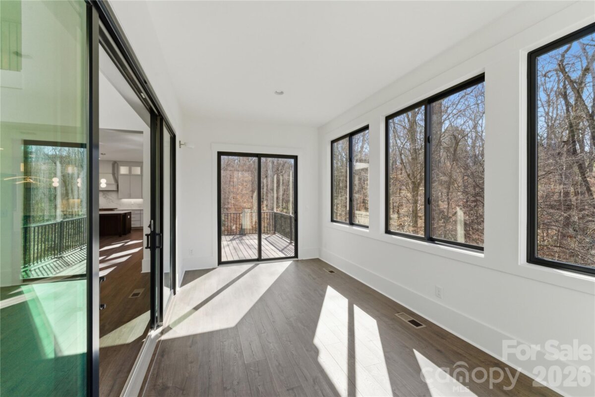 Stunning 5,282 sq. ft. custom-built home offering exceptional craftsmanship and a modern, open design. Ideally located near top golf courses, premier Waverly shopping and dining, and convenient to Uptown. This residence features a durable hardcoat stucco exterior, three-car garage, and double stained mahogany front doors with glass. Inside, the home is filled with natural light from Andersen 400 Series windows and showcases 8 ft. doors on the main level. The gourmet kitchen includes sleek, timeless cabinetry, designer lighting, a large island, and a separate scullery with sink and dishwasher. The family room offers floating shelves and a striking fireplace with a custom backdrop. A modern open staircase with walkway overlooks the spacious living area. Enjoy year-round views from the enclosed sunroom with aluminum railings overlooking wooded privacy. The home includes dual primary suites on the first and second floors, each with large walk-in closets, frameless shower doors, and high-end finishes; one suite features a freestanding soaking tub. Additional highlights include a natural gas heating system, Rinnai tankless water heater, and thoughtful luxury details throughout. A truly exceptional property with countless upgrades—come see all this home has to offer.