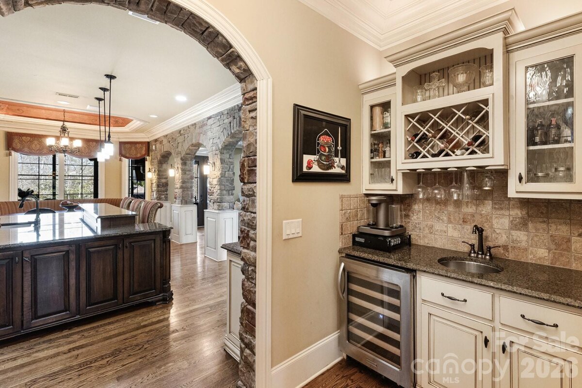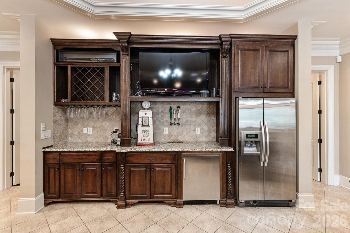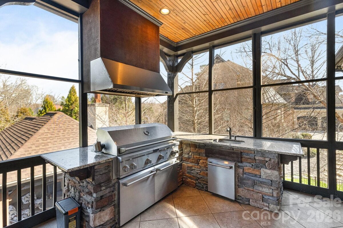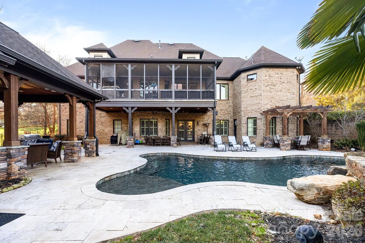 Luxury meets location in the heart of Providence Downs South! An exceptional residence where architectural artistry meets everyday luxury living. From the moment you arrive, custom molding, decorative ironwork, and meticulous architectural millwork reflect the level of craftsmanship found throughout this stunning 9,000 square foot home. Soaring ceilings with an abundance of glass for natural light, designer lighting, and rich hardwoods set a beautiful tone across the main level, while wood-accented cedar ceilings and extensive stonework add warmth and character to every space. The chef’s kitchen is built for both cooking and entertaining, featuring a 48†Thermador six-burner gas range, custom cabinetry, dual dishwashers, a wet bar, and designer finishes throughout! A main-level home office with custom integrated bookcases adds great functionality, while gas fireplaces throughout the home create a warm and welcoming atmosphere in every season. The primary suite offers a true retreat, complete with an oversized walk-through shower with dual rain heads and two additional shower heads, and beautiful travertine tile throughout. A dedicated washer and dryer hookup within the en-suite walk-in closet adds a practical touch that sets this home apart. The fully finished basement with 12' ceilings is made for entertaining and everyday enjoyment, and feels like an additional living space. A four-person sauna with integrated lighting and speakers, a home theater with projection and blackout shades, a home gym with rubber flooring, a second home office, a full kitchen, and a private guest suite with en-suite bath and walk-in closet give this level a versatility that is hard to match. Bespoke backlit artwork frames the theater entry and is one of many thoughtful design details found throughout. Outside, the backyard is a true getaway. A heated saltwater guinite pool with Pebble Tec finish, a tanning ledge, and custom travertine hardscape create an outdoor space that is both beautiful and functional; private and serene. A poolside arbor provides shade and a place to relax, while the covered patio with wooden ceiling and fans connects directly to the basement and makes indoor-outdoor living easy. The outdoor kitchen includes a Coyote built-in grill, Coyote beverage refrigerator, and generous hidden storage behind the cabana. The main level screened porch has its own outdoor kitchen with a 42†gas grill, sink, perfect for outdoor dining and entertaining year round. The three-car garage offers elevated ceiling height to accommodate a car lift. A home that has been thoughtfully built and carefully finished at every level. Top-rated Marvin schools, and just minutes from The Bowl in Ballantyne, but tucked away by the gates of PDS!