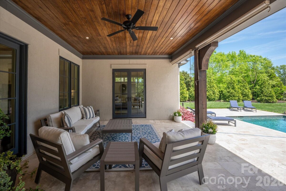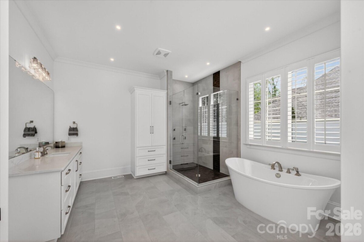 Welcome to this exceptional custom-built home in Skyecroft, completed in 2023 with a focus on a clean modern design, with efficient open spaces and finished to a high standard. Offering 5 bedrooms, 4.5 baths, and thoughtfully designed living spaces, this residence blends the quality of new construction with the comfort and functionality of everyday living. A dramatic grand foyer sets the tone upon entry, anchored by a stunning statement lighting fixture. The main level also features a dedicated front office and a well-appointed mudroom, designed for both convenience and organization. The gourmet kitchen is the striking centerpiece of the home, defined by its clean, modern design and tailored for both everyday living and effortless entertaining. It features a Wolf range and separate Wolf combination oven/microwave, seamlessly complemented by Bosch appliances including a built-in coffee system, dishwasher, and refrigerator. A spacious walk-in pantry with custom shelving and mudroom complete the space. The home flows seamlessly from its main living spaces into private retreats and well-designed outdoor areas. The primary suite is a true private retreat, designed with comfort and sophistication in mind. The spa-inspired bath features an expansive walk-in shower, an elegant freestanding soaking tub, and dual vanities with designer finishes. A fully customized walk-in closet offers both beauty and functionality, creating a space that feels both serene and luxurious. Upstairs, generously sized secondary bedrooms provide flexibility for family and guests, including a large bonus room with two closets, ideal as a fifth bedroom, media room, or playroom. Three of the four upper-level bedrooms offer direct access to bathrooms, including one that also functions as a hall bath for the bonus/5th bedroom room. Step outside to a backyard designed for both relaxation and entertaining. A stunning pool with travertine surround anchors the space, complemented by a fully fenced, generous yard with ample room for gathering and outdoor enjoyment. Additional highlights include custom closets throughout, 3-inch LED recessed lighting, Norman plantation shutters, huge walk-in storage in unfinished space on upper level, and an oversized 3+ car garage. Located in one of the area's most desirable communities, this is a rare opportunity to own a nearly new custom home with exceptional finishes and thoughtfully designed spaces without the wait of new construction. Skyecroft offers an exceptional lifestyle with resort-style amenities including a clubhouse, pool, tennis courts, four miles of scenic walking trails, and picturesque lakes all within a beautifully landscaped, gated community.