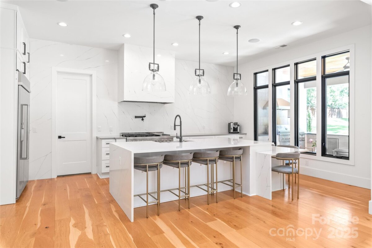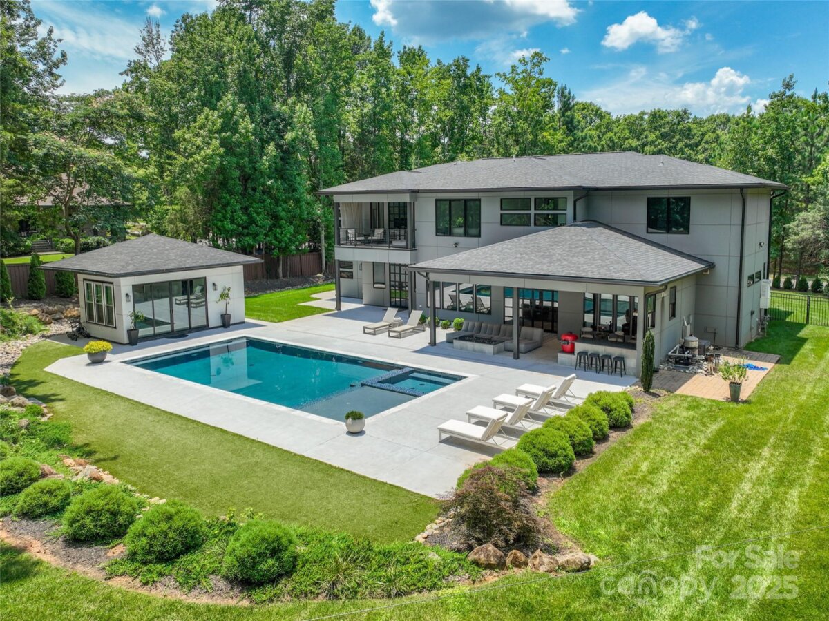 Stunning Modern estate located in highly desirable Waxhaw/Marvin area, zoned for top rated Union County schools. Set on over an acre, this custom-built home offers generous space for comfortable living and entertaining, with soaring ceilings, white oak floors, and a floating staircase. The gourmet kitchen features a 48†gas range, built-in fridge, pot filler, and waterfall quartz island. Natural light fills the open layout, enhancing the home’s elegant design. The resort-style backyard includes a heated pool, hot tub, tanning ledge, outdoor kitchen, gazebo, and a guest/pool house with full bath. Additional highlights include a home gym, built in sound system, indoor sauna, executive office, formal dining room, sprinkler system, and an oversized 3-car garage with epoxy floors, EV charger and a workshop. A rare blend of luxury, comfort, and thoughtful detail!