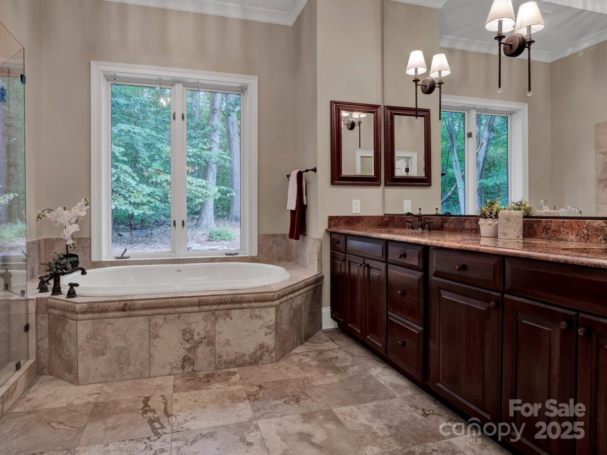Welcome to Whispering Oaks blending rustic elegance with modern comfort in a private wooded setting. This 4-bedroom, 4-bath home welcomes with a circular drive, brick and stone accents, and lush landscaping with waterfalls and koi pond. Inside, walls of Jeld-Wen windows frame serene views, while features include travertine flooring, soaring ceilings, and three fireplaces. The chef’s kitchen boasts granite countertops, an American Range stove, and butler’s pantry, opening to dining and family areas. Outdoor living shines with a screened porch featuring a fireplace and motorized shades, plus multiple covered porches and patios. The luxurious primary wing offers dual closets, spa bath, and porch access. A versatile walk-out lower level includes additional bedrooms, second kitchen, and storage. Detached workshop, tankless water heater, and whole-home filtration add convenience. Located near top schools, shopping, and highways with low HOA, this estate is a rare retreat combining nature, craftsmanship, and refined living.